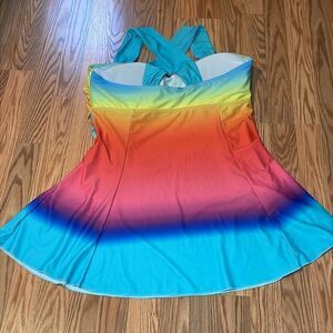 Tie Dyed Rainbow Swim Dress, 2 piece Swimdress, shorts, XL