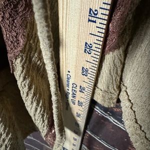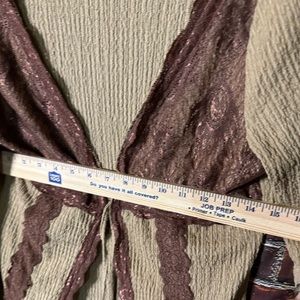 Unbranded and size unknown (tag cut out) brown and beige tie front cardigan with bell type sleeves. Minimally worn. Approximate measurements in photos.