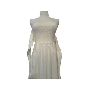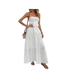 Chic strapless maxi dress in white. Great for the summer. Perfect vacation dress.