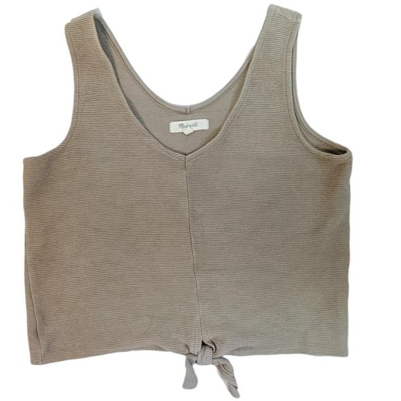 Cute textured taupe top with v neck cut and hemline down the center. Perfect for layering. Amazing quality with no flaws to note. Texture and Thread by Madewell.