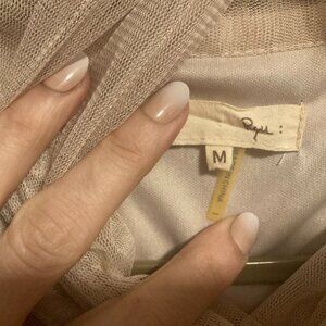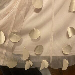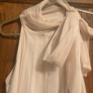 Ryu brand tie-neck, halter dress. Loose, flowy, gives Jazz Age Lawn Party/Great Gatsby vibes. Neutral cream color (with subtle peach undertone). Size Medium. Lined with guazey overlay and fabric polka dot details.