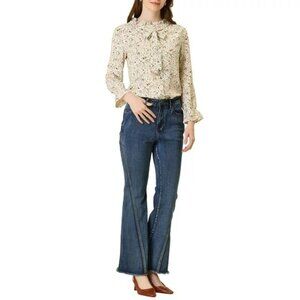 This long-sleeved floral blouse from Allegra K features a feminine bow tie, ruffle collar, and button-down design. Perfect for both casual and formal occasions. Ruffle mock neck and ruffle cuff add a romantic and retro vibe.