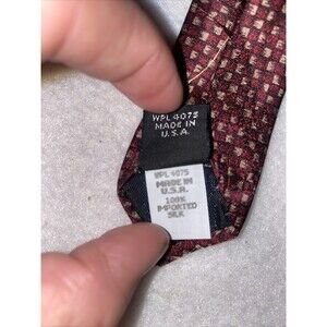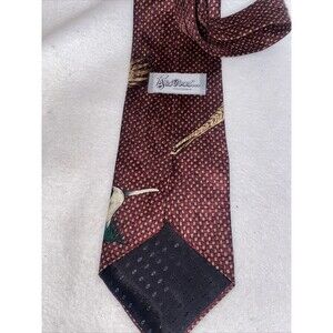 Vintage tie tree California hunting theme . Elegant checkered square pattern on a Burgandy brown mens tie with pheasant dog print