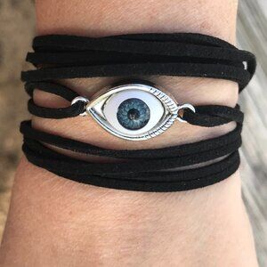 Tie Wrap Evil Eye Protection Silver Bracelet Cuff Yoga Boho Cord Bohemian Gift