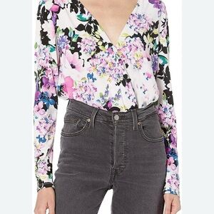 Bold and bright in an eye-catching floral print, this knit bodysuit