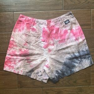 Pink black and brown Tie dye Dockers Levi’s short shorts. Cotton shorts high shorts. Hip to hip: 16 Length: 17 1/2 Inseam: 6 1/2