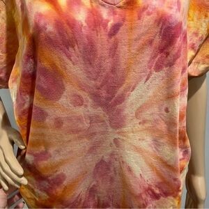 Tie dye vneck tshirt 2XL starburst galaxy in pink,orange, gold gravity dye