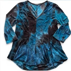 Y2K forrest fairy teal and brown tie-dyed paisley detailed blouse.