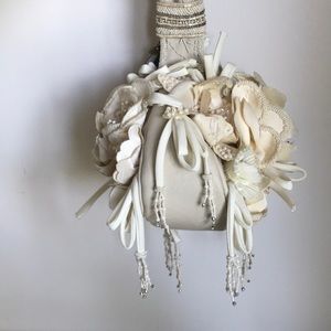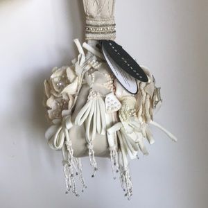 New With Tags, never used. Stored in my temperature controlled closet in its dust bag. Absolutely gorgeous with a beaded gown, and the tiny hand strap makes it easy to keep close on your special day!