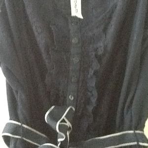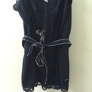 Navy blue, lace front top and around bottom, with a navy and white ribbon for around the waist.