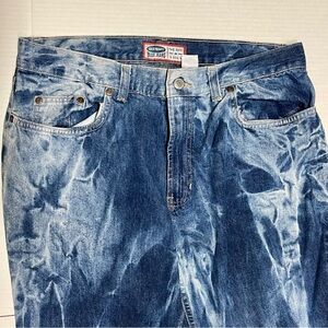 Trendy blue tie-dye jeans with a wide-leg design. Perfect for casual outings. Size 14 Y2K