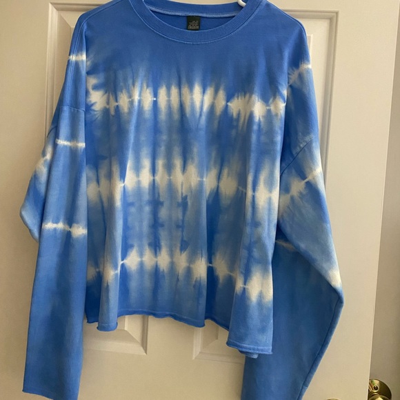 • blue and white tie dye crewneck top