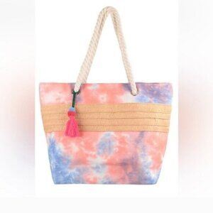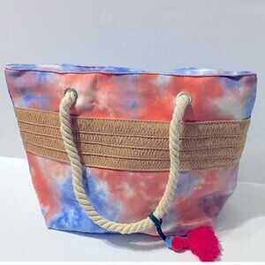 Tie-Dye Canvas Tote Bag w/Rope Handles & Tassel Accent Zipper Closure Inner Pocket and lining. NEW