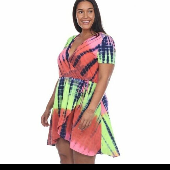 Tie Dye Mini Fake Wrap Dress Plus sz 14
