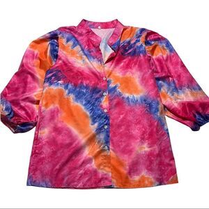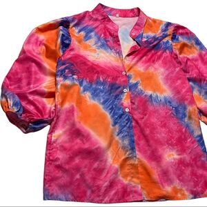 Tie-Dye Multicolored Wide Long Sleeve Button Down Top Size S