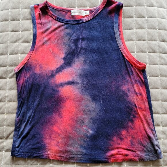 Vibrant tie-dye sleeveless top in red and blue. Very gently used. Women's size M. Smoke and pet free home.