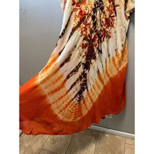 Tie-Dye Womens Free Size Dress Beach By Exist Orange & Brown Floral Embroidery