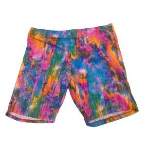 Ladies super cute multicolored tie dye patterned biker style shorts. Excellent condition. New with tags. Ladies size 3X.
