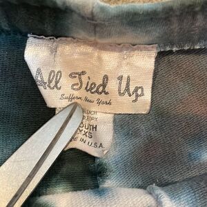 boutique tie-dyed joggers. denim patch and tie-dyed drawstring detail. in great preloved condition. please see all pics.