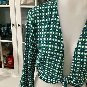 Tie-Front Crop Top Green white blue Geometric Size Small Lulus