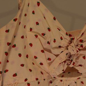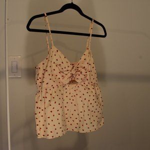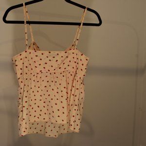 classic cami updated with our signature strawberry print and a cutout front to show off a sliver of skin. We'll be wearing this top with skirts, cutoffs, basically everything summer.