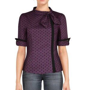 Tie-Neck Thoughtful Top - Purple Polka Dot