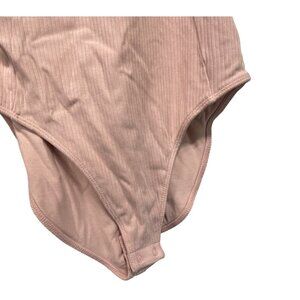 Tie-Shoulder V-Neck Rib-Knit Bodysuit Abalone Pink Old Navy Size XS Dance Ballet