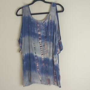 Tie-dye Cold Shoulder Boho Stretch Jersey Knit Knotted Top Women's 1X