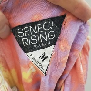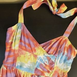 Short tiedye dress. Halter style, ties at the back of the neck. Has pockets!