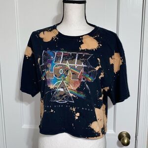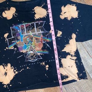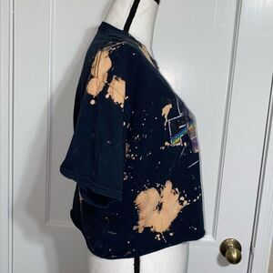 Super cute raw hemmed tie-die Pink Floyd crop tee shirt. Black with bleach dye. Faded logo for vintage appeal. Size large! Awesome shirt!