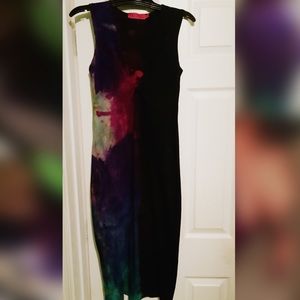 One side Tie-dyed the other side Solid black 95% Cotton, 5% Elastane