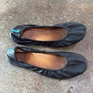 Experience the elegance and comfort of Tieks Black Leather Ballet Flats, designed with a classic silhouette and a soft, flexible construction. These flats feature a rounded toe and an elastic topline, ensuring a snug fit for all-day wear. Crafted from premium leather, they offer a timeless style perfect for any occasion.