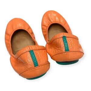 Tieks Coral Patent Leather Ballet Flats offer chic comfort with their vibrant and sleek finish, ideal for versatile styling.