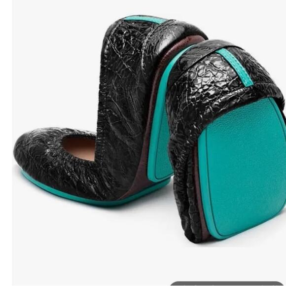 Tieks Italian Leather Ballet Flat Crocodile Patent Print Black size 9 worn once - no box.