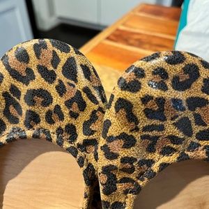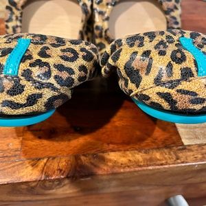 Up for sale are my size 8 leopard Tieks. Never worn outside, Just tried on around the house. These are like brand new with the exception of a discolored smudge on the inside of one insole that I don’t know how got there. Comes with box, topper, pouch and shoes.