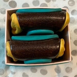 Make a modern statement in Mustard Yellow Tieks. From the boardroom to the beach, Mustard Yellow is a striking, sunny style sure to bring any wardrobe to life! Shoes are a size 6 and includes original box, pouch, and tote. Excellent condition with scuff marks on toe area and back heels.