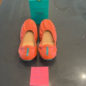 Bright orange leather flats by Tieks. Stylish and comfortable for everyday wear.