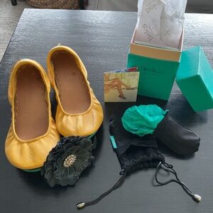 Tieks - sz 11 mustard yellow - with box, flower, bag, and shoe bag