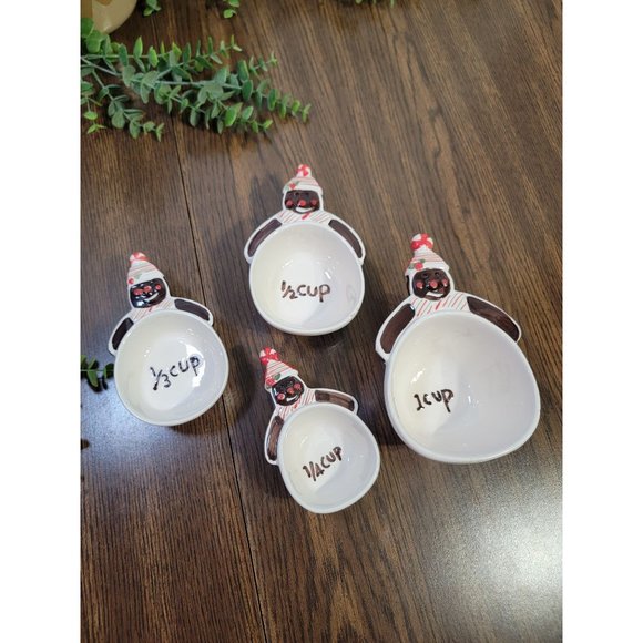 Tien Hsing Int'l Trading Co "Gingerbread Man" Measuring Cups. Gently used Pre-owned vintage condition. There is a chip in the glaze on the 1 cup. Set of 4; 1 cup, 1/2 cup, 1/4 cup, 1/3 cup. Please see pictures for measurements and details.