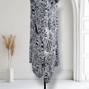 Tienda Ho Oversized Silk Midi Lagenlook Dress Navy Tribal Graphic Print Tunic