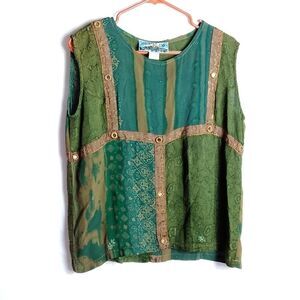 Rayon top, embellished with embroidery and mirrors, free size, or one size,. Chest 23", length 24". Z