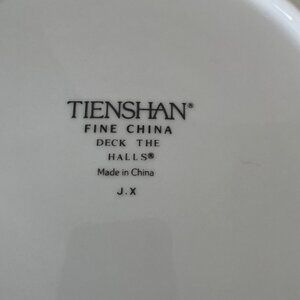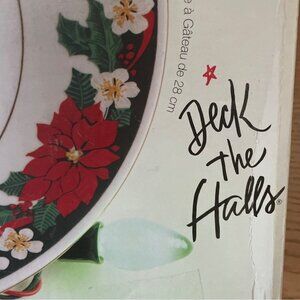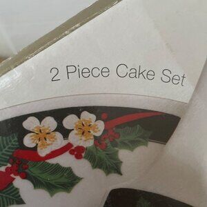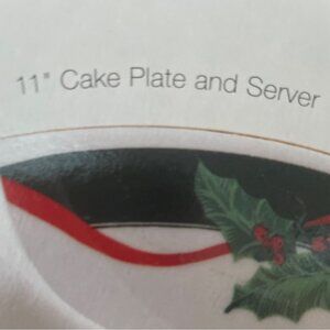 Tienshan Deck The Halls Cake Plate and Server Set Christmas Pattern 11 inch New