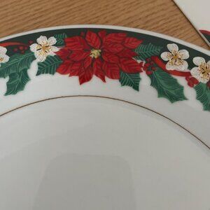 Festive 11-inch cake plate and server with poinsettia design. Elegant fine china, ideal for holiday gatherings and celebrations.