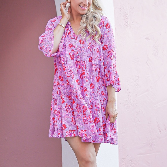 Stay stylish by the water with this Draper James Tiered Dress Coverup in Floral Scallop. Designed for effortless elegance, this lightweight coverup features a flattering tiered silhouette and a charming floral scallop print. Whether you're lounging by the pool or strolling along the beach, this piece is the perfect blend of comfort and Southern charm. Wear as a dress or a beach coverup!