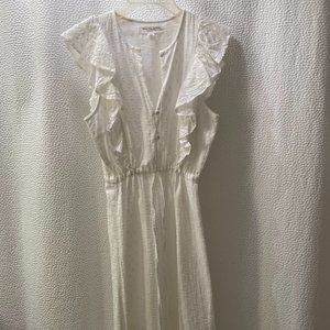 India Collection. Polka dot pattern. Tiered, Linen (lined) Dress. White Maxi; cuts mid calf on 5'6" model. Very cute, flowy and light weight. Great for a Summer night out or brunch. Tie waist, Size XS, runs big. Excellent condition.