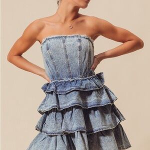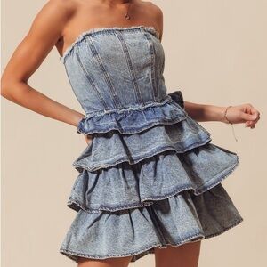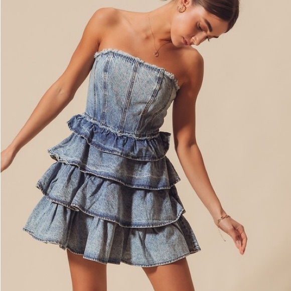 Girl it’s concert season! Get your boots on, let your hair down! You are born to struck this dress! Strapless, denim, mini dress