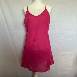 Flowy summer dress in a vibrant pink hue. This casual dress features a flattering V-neckline, delicate ruffle sleeves, and a charming tiered design. The dress is adorned with pintuck detailing on the bodice and a button-down front. Perfect for a sunny day outing, a casual brunch, or a relaxed vacation.