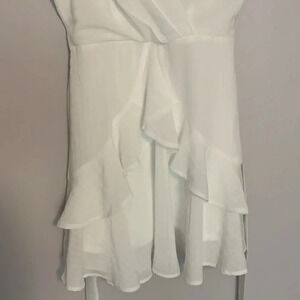 Tiered Ruffled Spaghetti Strap Faux Wrap White Dress Size Medium Flowy Summer