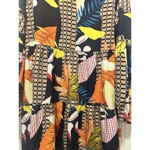 Tiered V-Neck, Navy, Yellow, Orange Colorful Abstract Flowy Comfortable Dress XL