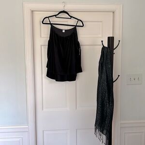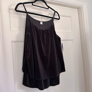 Tiered Velour Swing Top NEW! Black Size Large Velour Camisole Spaghetti Straps